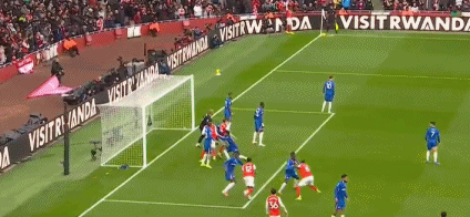 第44分钟,里斯-詹姆斯角球传中,赖斯解围时手臂触球,险些自摆乌龙,随后拉亚飞身单掌将球扑出。